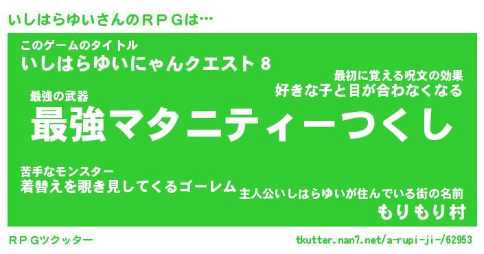 | 伝説のあだ名 | 『不死鳥のスナイパーいしはらゆい』 |