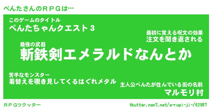 | 伝説のあだ名 | 『伝説のスナイパーぺんた』 |