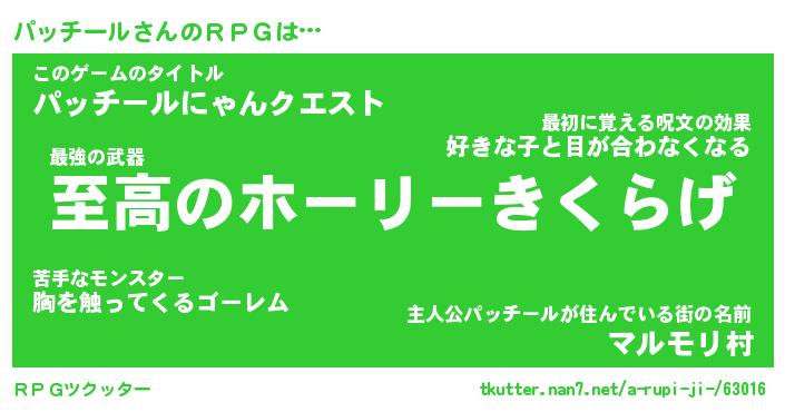 | ファンタジー風あだ名 | 『パッフェル』『エターナルパッチールー』 |