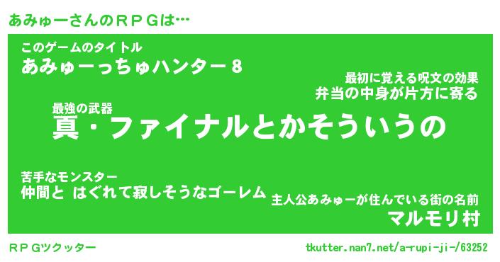 | 伝説のあだ名 | 『封印されし傭兵あみゅー』 |