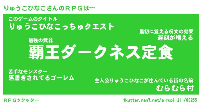 | 男性向けラノベタイトル風あだ名 | 『リュウコヒナコアートオンライン』 |