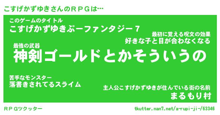 | 女子向けラノベタイトル風あだ名 | 『こすげかずゆき姫と円卓の騎士』 |