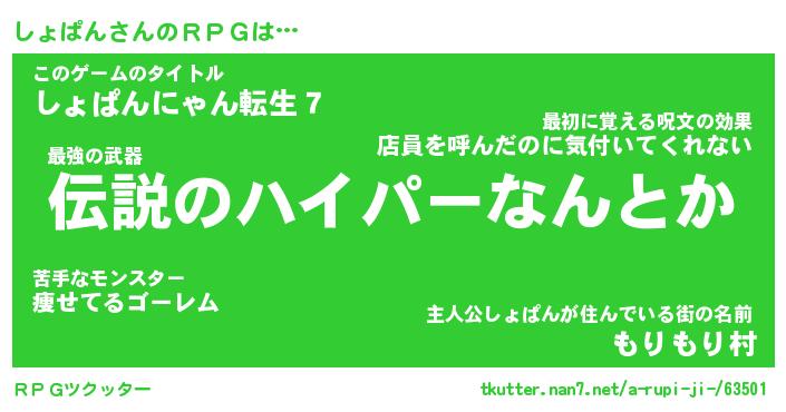 | 男性向けラノベタイトル風あだ名 | 『しょぱんの憂鬱』 |