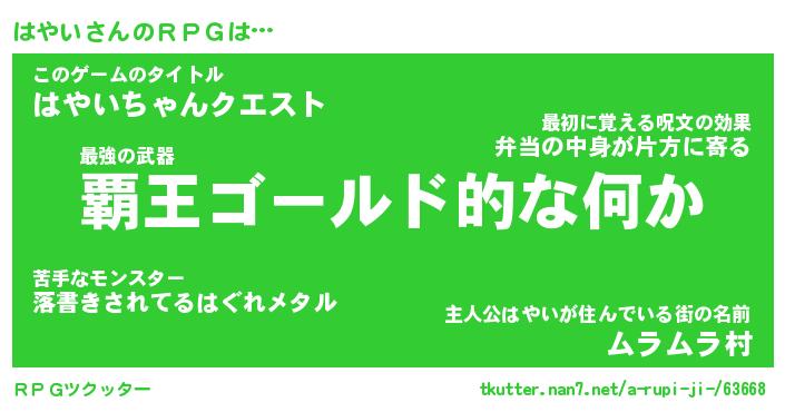 | 男性向けラノベタイトル風あだ名 | 『ハヤイアートオンライン』 |