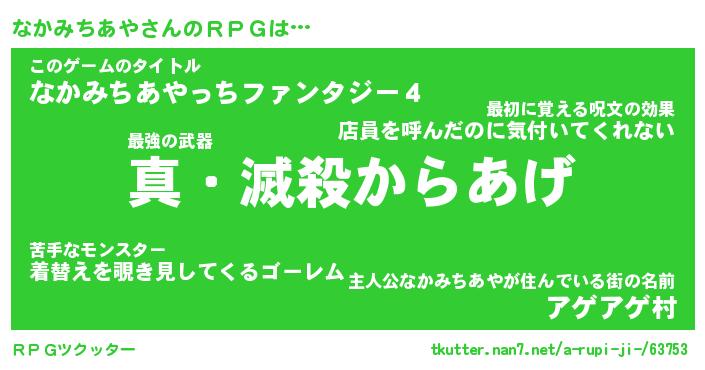 | 男性向けラノベタイトル風あだ名 | 『ナカミチアヤアートオンライン』 |