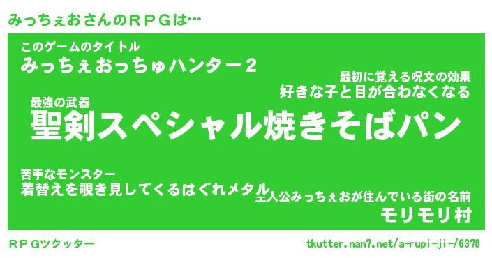 | ファンタジー風あだ名 | 『ミッフェル』『エターナルミッチェオー』 |