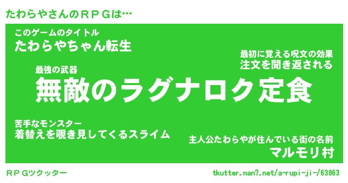 | 男性向けラノベタイトル風あだ名 | 『タワラヤアートオンライン』 |