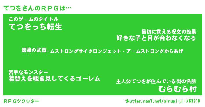 | ファンタジー風あだ名 | 『テツフェル』『エターナルテツヲー』 |