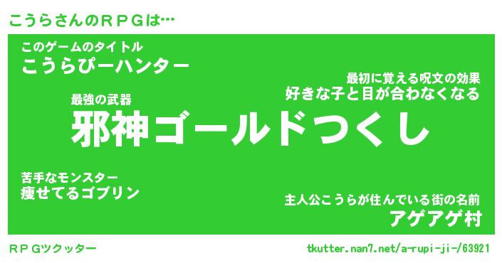 | ファンタジー風あだ名 | 『コウフェル』『エターナルコウラー』 |