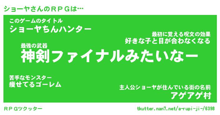 | 男性向けラノベタイトル風あだ名 | 『ショーヤの憂鬱』 |