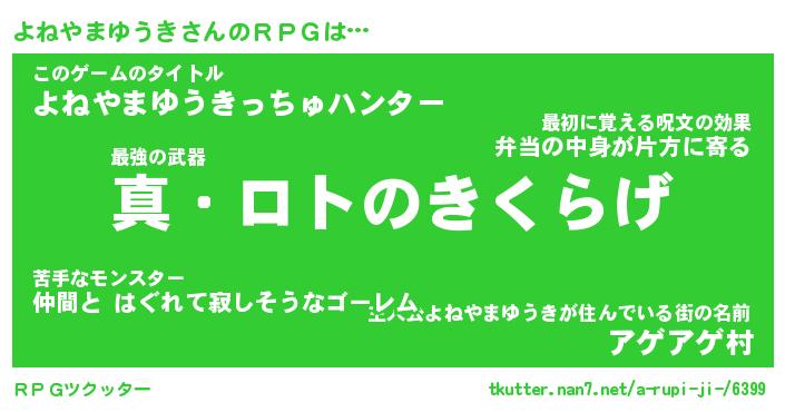 | 胡散臭い通販商品みたいなあだ名 | 『億万長者になれるブレスレット…その名も「よねやまゆうき」』 |