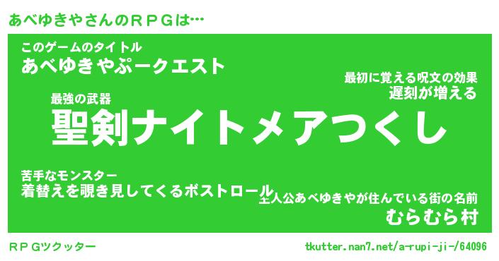 | 男性向けラノベタイトル風あだ名 | 『あべゆきやの憂鬱』 |