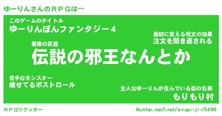 | 男性向けラノベタイトル風あだ名 | 『ゆーりんの憂鬱』 |