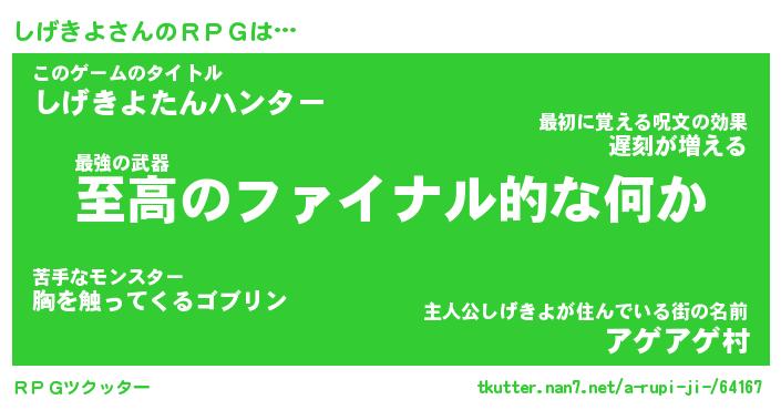 | 男性向けラノベタイトル風あだ名 | 『シゲキヨアートオンライン』 |