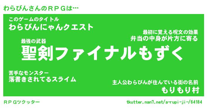 | 男性向けラノベタイトル風あだ名 | 『わらびんの憂鬱』 |