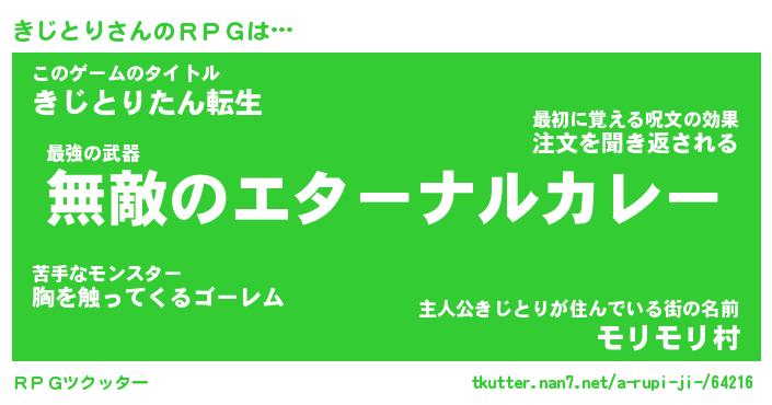 | 男性向けラノベタイトル風あだ名 | 『キジトリアートオンライン』 |