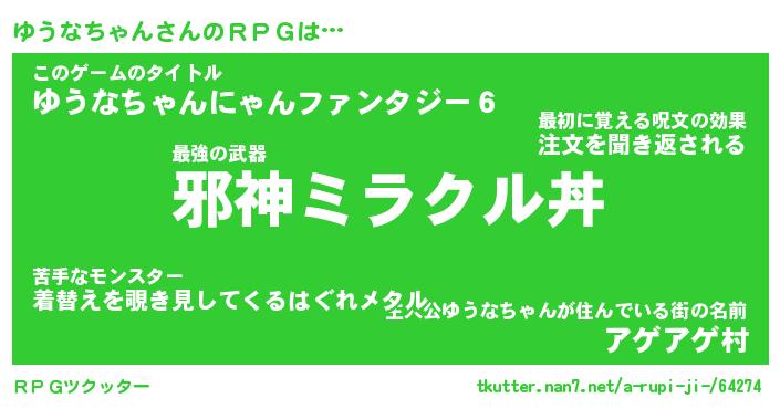 | 伝説のあだ名 | 『封印されし竜騎士ゆうなちゃん』 |