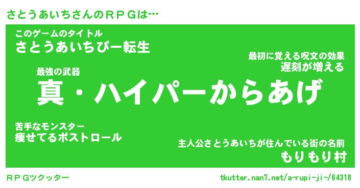| 伝説のあだ名 | 『封印されし竜騎士さとうあいち』 |