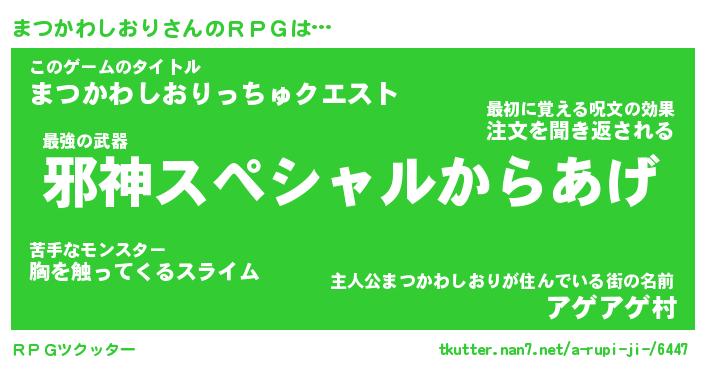 | 胡散臭い通販商品みたいなあだ名 | 『億万長者になれるブレスレット…その名も「まつかわしおり」』 |