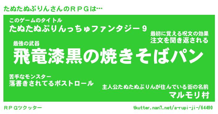 | 伝説のあだ名 | 『封印されしスナイパーたぬたぬぷりん』 |