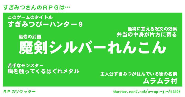 | 男性向けラノベタイトル風あだ名 | 『すぎみつの憂鬱』 |