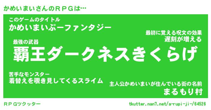 | ヒーロー風カッコイイあだ名 | 『スーパーカメイマイ』『天弓騎士カメ』 |