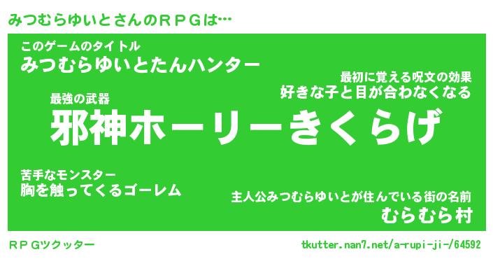 | 伝説のあだ名 | 『封印されし傭兵みつむらゆいと』 |