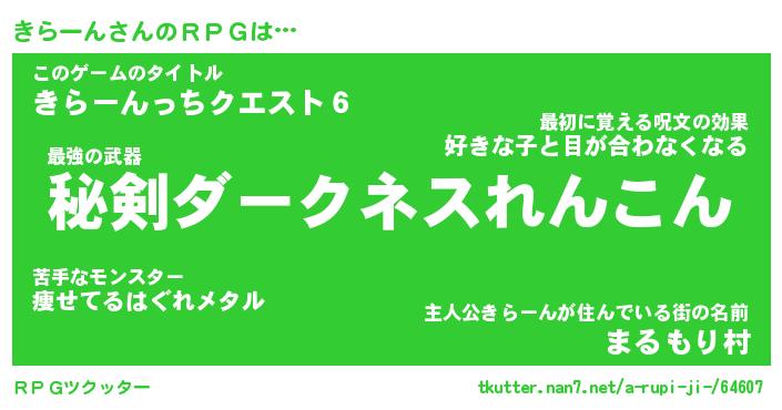 | 男性向けラノベタイトル風あだ名 | 『きらーんの憂鬱』 |