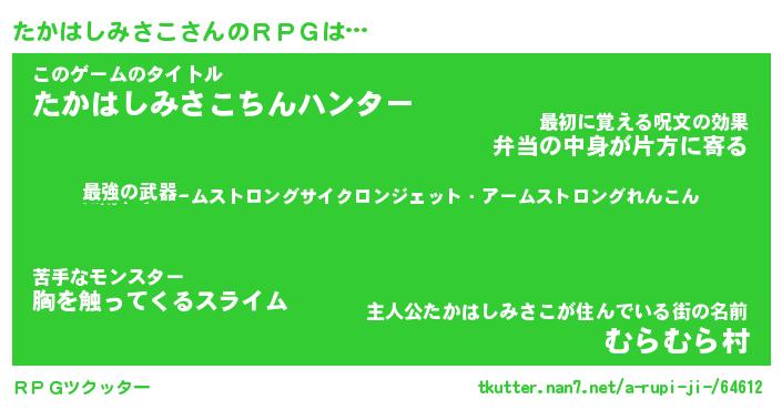 | ツイッター | たかはしみさこさんのツイッターID『renkon_man』 |