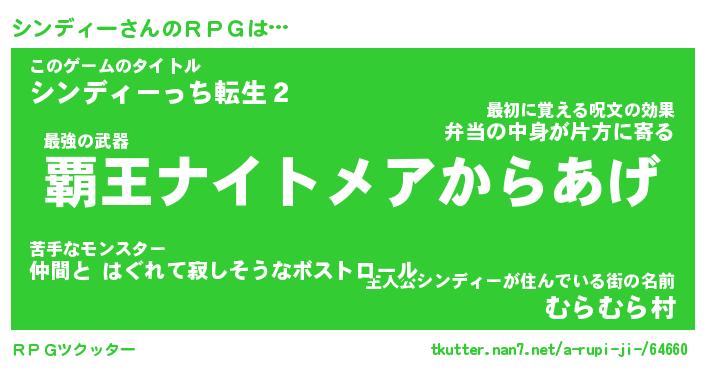 | ファンタジー風あだ名 | 『シンフェル』『エターナルシンディーー』 |