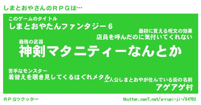 | ファンタジー風あだ名 | 『シマフェル』『エターナルシマトオヤー』 |