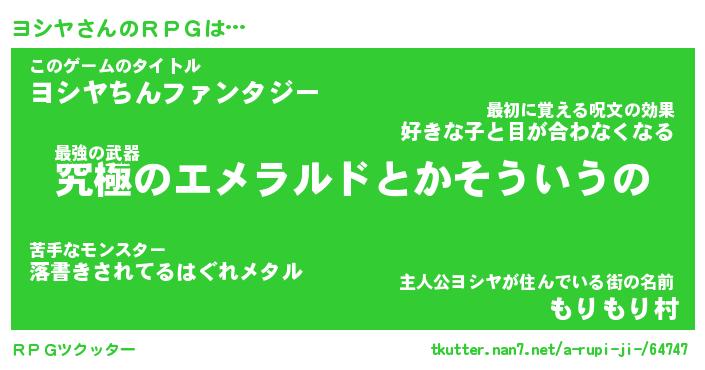 | 胡散臭い通販商品みたいなあだ名 | 『モテモテ間違いなし霊験あらたかなお札…その名も「ヨシヤ」』 |