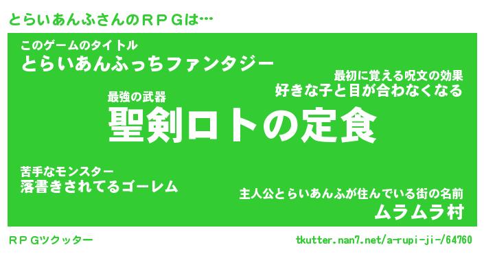 | 男性向けラノベタイトル風あだ名 | 『とらいあんふの憂鬱』 |