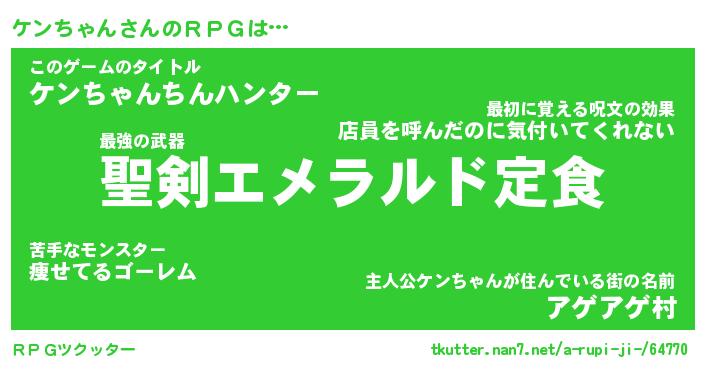 | ヒーロー風カッコイイあだ名 | 『スーパーケンチャン』『黄金騎士ケン』 |