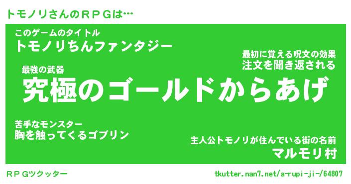 | ファンタジー風あだ名 | 『トモフェル』『エターナルトモノリー』 |