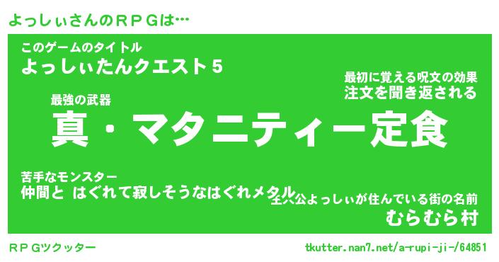 | ヒーロー風カッコイイあだ名 | 『スーパーヨッシィ』『暗黒騎士ヨッ』 |
