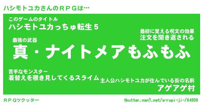 | 男性向けラノベタイトル風あだ名 | 『ハシモトユカアートオンライン』 |