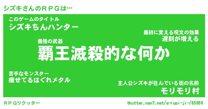 | 男性向けラノベタイトル風あだ名 | 『シズキアートオンライン』 |