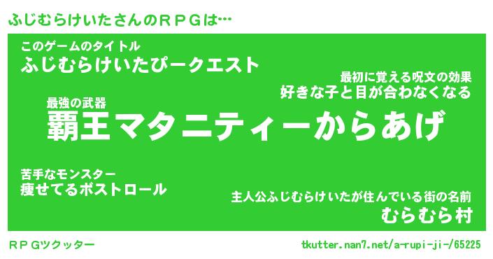 | 伝説のあだ名 | 『封印されしスナイパーふじむらけいた』 |