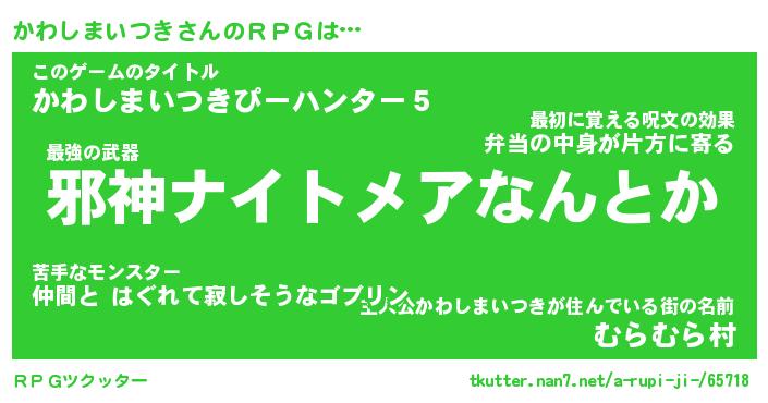| 伝説のあだ名 | 『封印されしスナイパーかわしまいつき』 |