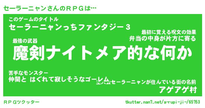 | 伝説のあだ名 | 『伝説のスナイパーセーラーニャン』 |