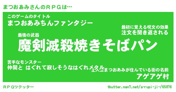 | ファンタジー風あだ名 | 『マツフェル』『エターナルマツオアミー』 |