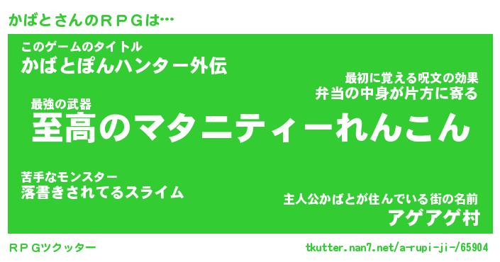 | 男性向けラノベタイトル風あだ名 | 『カバトアートオンライン』 |