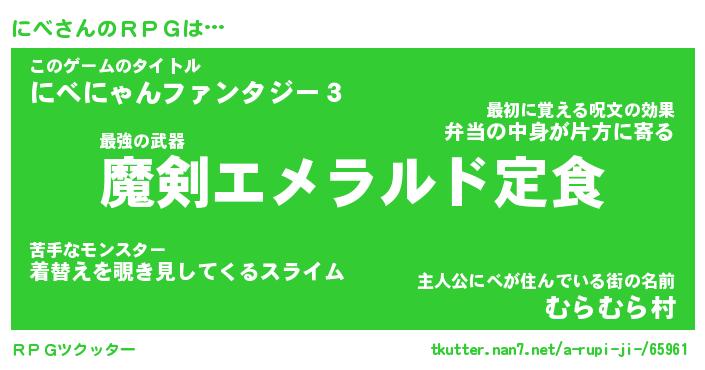 | 男性向けラノベタイトル風あだ名 | 『にべの憂鬱』 |