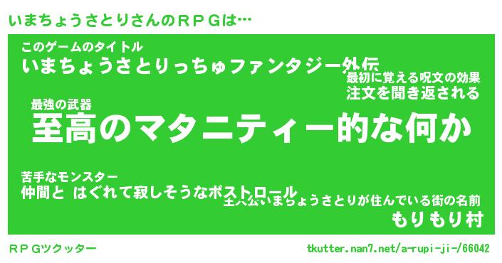 | 男性向けラノベタイトル風あだ名 | 『イマチョウサトリアートオンライン』 |