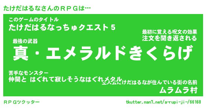 | ヒーロー風カッコイイあだ名 | 『スーパータケダハルナ』『幻影騎士タケ』 |