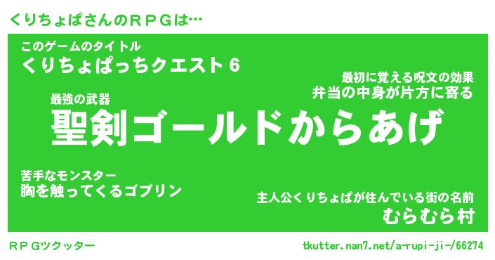 | 男性向けラノベタイトル風あだ名 | 『くりちょぱの憂鬱』 |