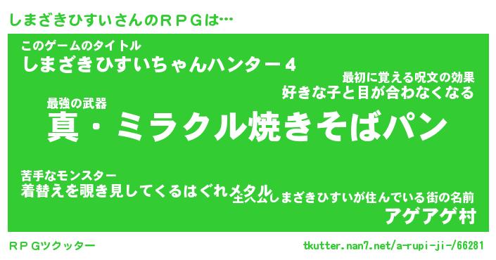 | 男性向けラノベタイトル風あだ名 | 『シマザキヒスイアートオンライン』 |