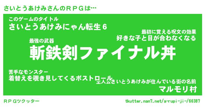 | 男性向けラノベタイトル風あだ名 | 『さいとうあけみの憂鬱』 |