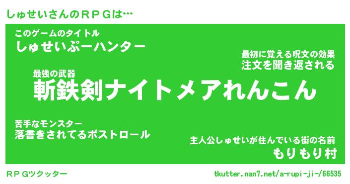 | 伝説のあだ名 | 『伝説のスナイパーしゅせい』 |